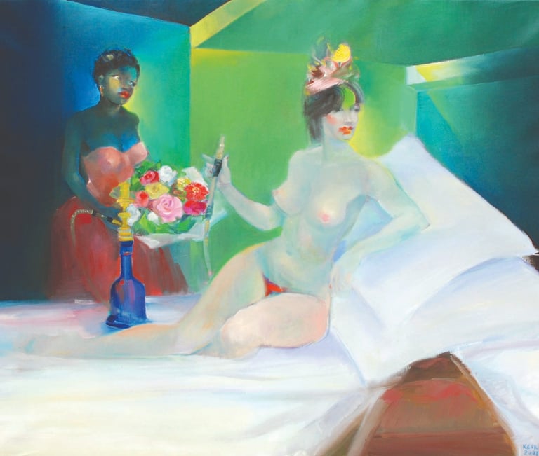 Kayıhan Keskinok, 1923 yılında İzmir'de dünyaya geldi. Öğretmenlik mesleğine başladıktan sonra, resim ve sanat tarihine olan derin ilgisini Gazi Eğitim Enstitüsü'nde aldığı kapsamlı eğitimle birleştirdi. Görev yaptığı okullarda öğrencilere resim ve sanat tarihi dersleri verdi. Sanat kariyerindeki parlak başarıları arasında 14 ödül ve 45 kişisel sergi bulunmaktadır. Keskinok, öğretmenlik mesleğiyle beraber sanat dünyasında da tanınan bir isim haline gelmiş ve uzun yıllar süren sanat yaşamında önemli katkılar sunmuştur.