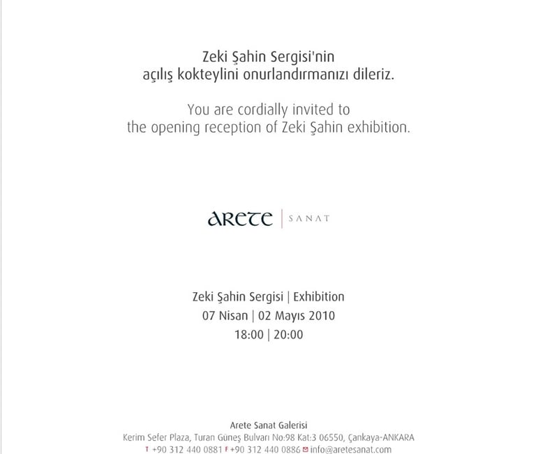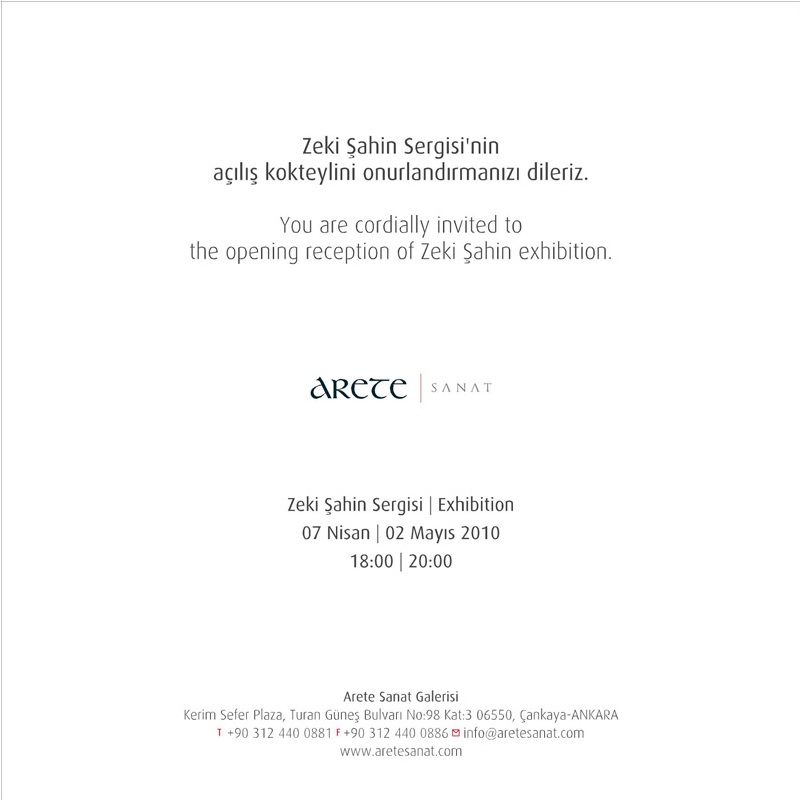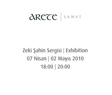 Arete’nin sanat yolculuğu, 7 Nisan – 2 Mayıs 2010 tarihleri arasındaki Zeki Şahin Sergisi’yle yeni bir boyuta taşınıyor