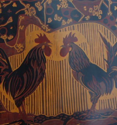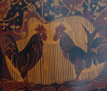 Ercan Gülen - Horozlar 40 x 49 cm Linol