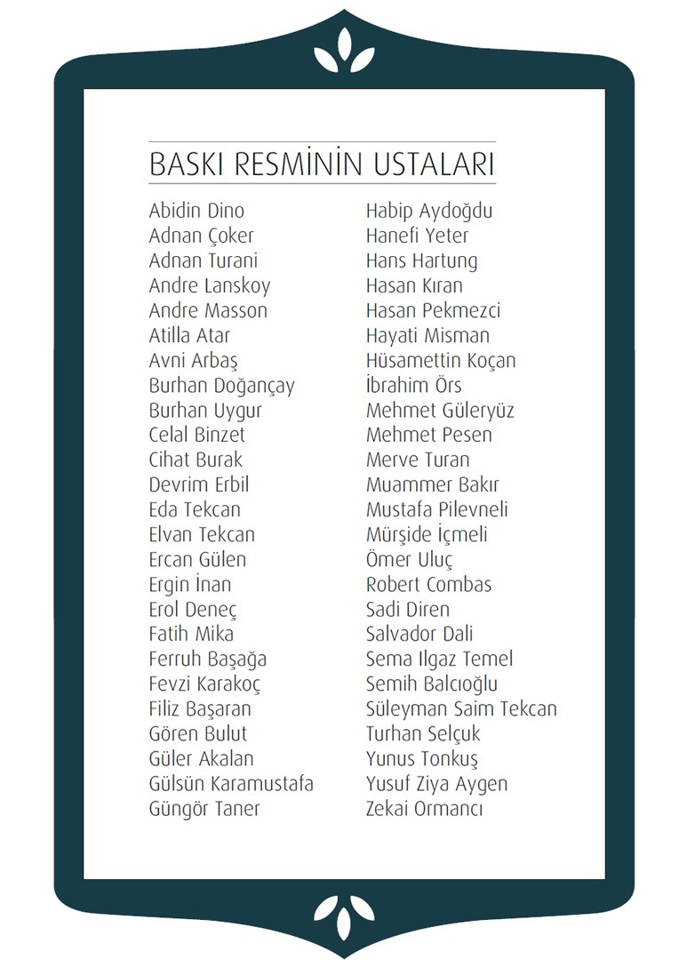 Düş ve gerçek arasında salınan izleklerin etkin olduğu, her biri kendi alanında yetkinleşmiş özgün yaratıcıların, en özgün yapıtlarıyla bir buluşma; ‘’ Baskı Resminin Ustaları’’ sergisi.