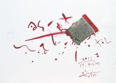 Kırmızı Çığlık 2 - 100 x 100 cm, Tuval Üzerine Akrilik, Tuval Bezi Atıkları, 2011
