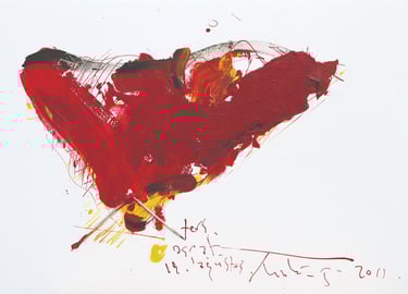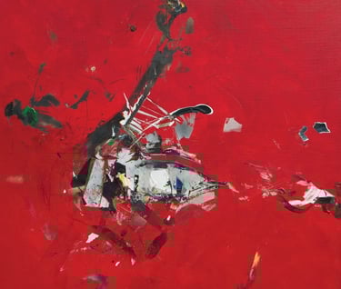 Kırmızı Çığlık 1 - 150 x 150 cm Tuval Üzerine Akrilik, Tuval Bezi Atıkları, 2011