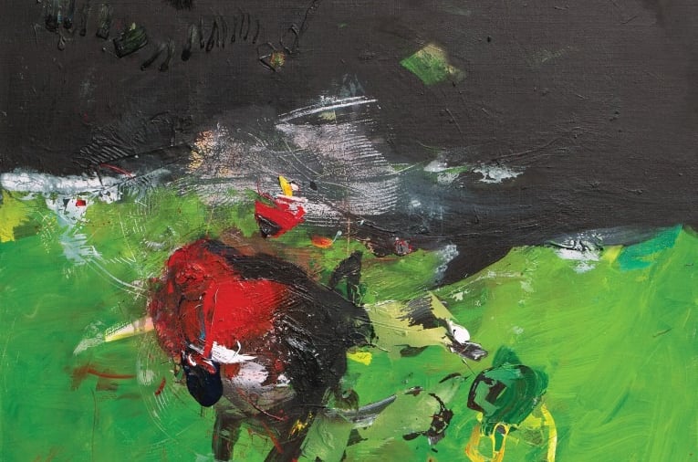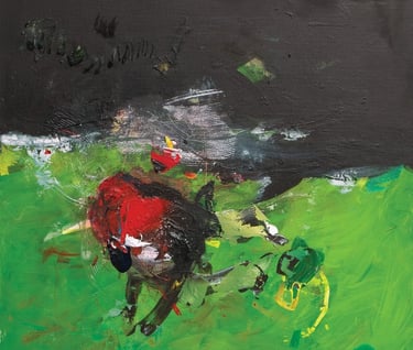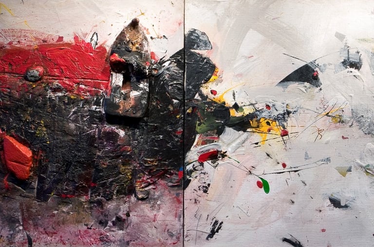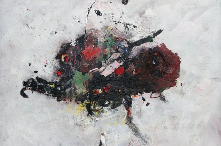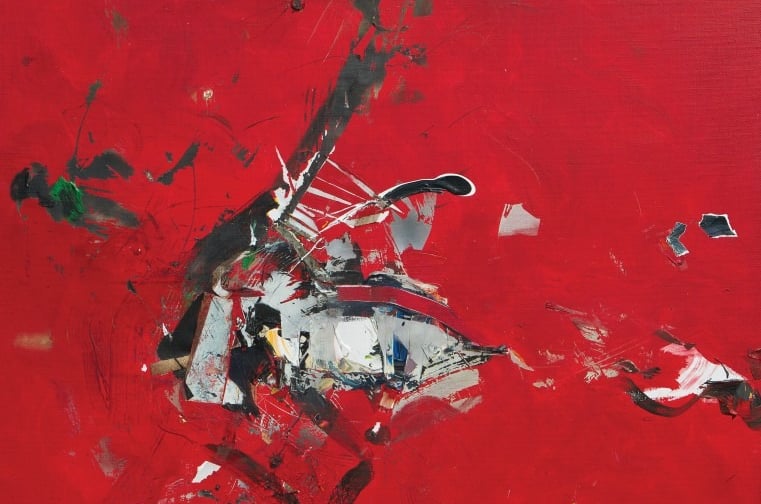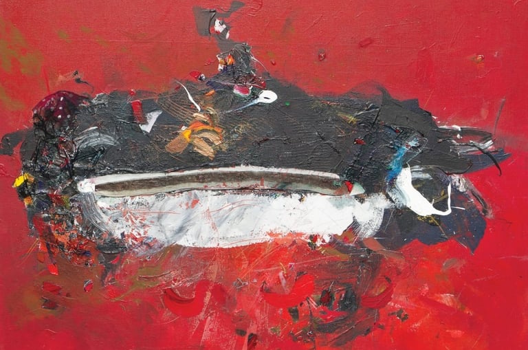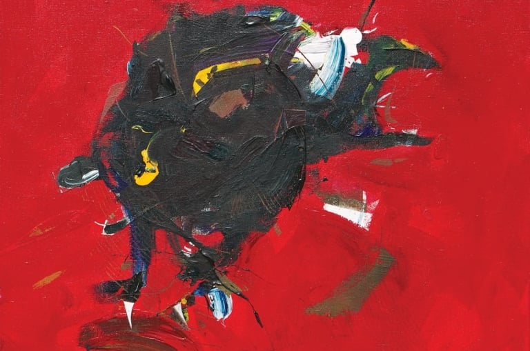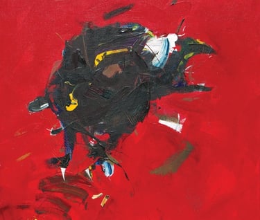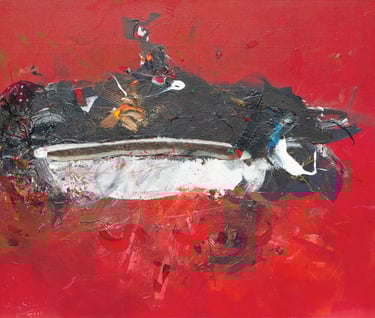 Boğanın Kırmızı Soluğu - 118 x 148 cm Tuval Üzerine Akrilik, Bez ve Tuval Bezi Atıkları, 2011