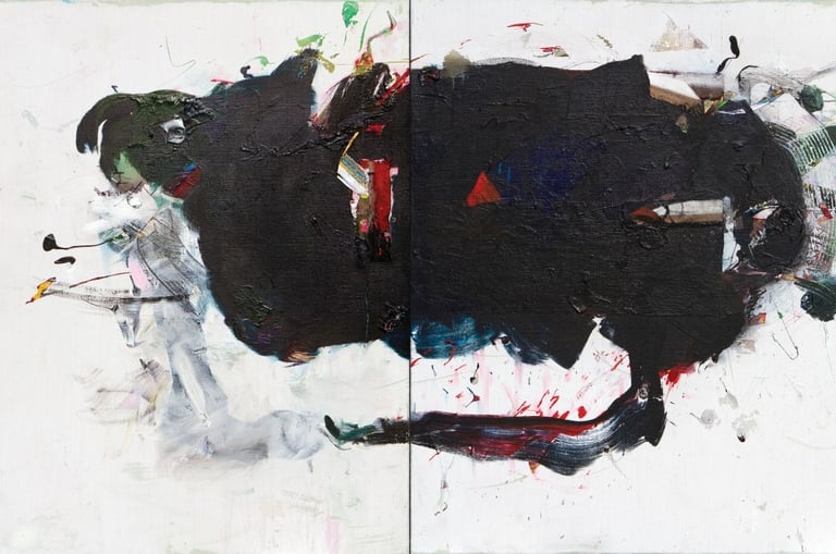 Dokunmak İkili - 150 x 300 cm, Tuval Üzerine Akrilik, Fırça Kılı, Eldiven, Tuval Bezi Atıkları, 2011
