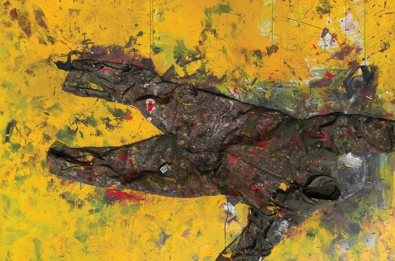 Aspat Kıyamet - 146 x 196 cm Tuval Üzerine Akrilik, Çelik Macun, Tuval Bezi Atıkları, 2011